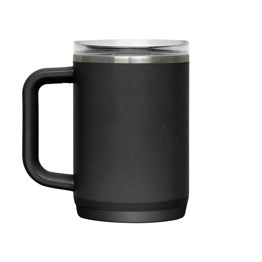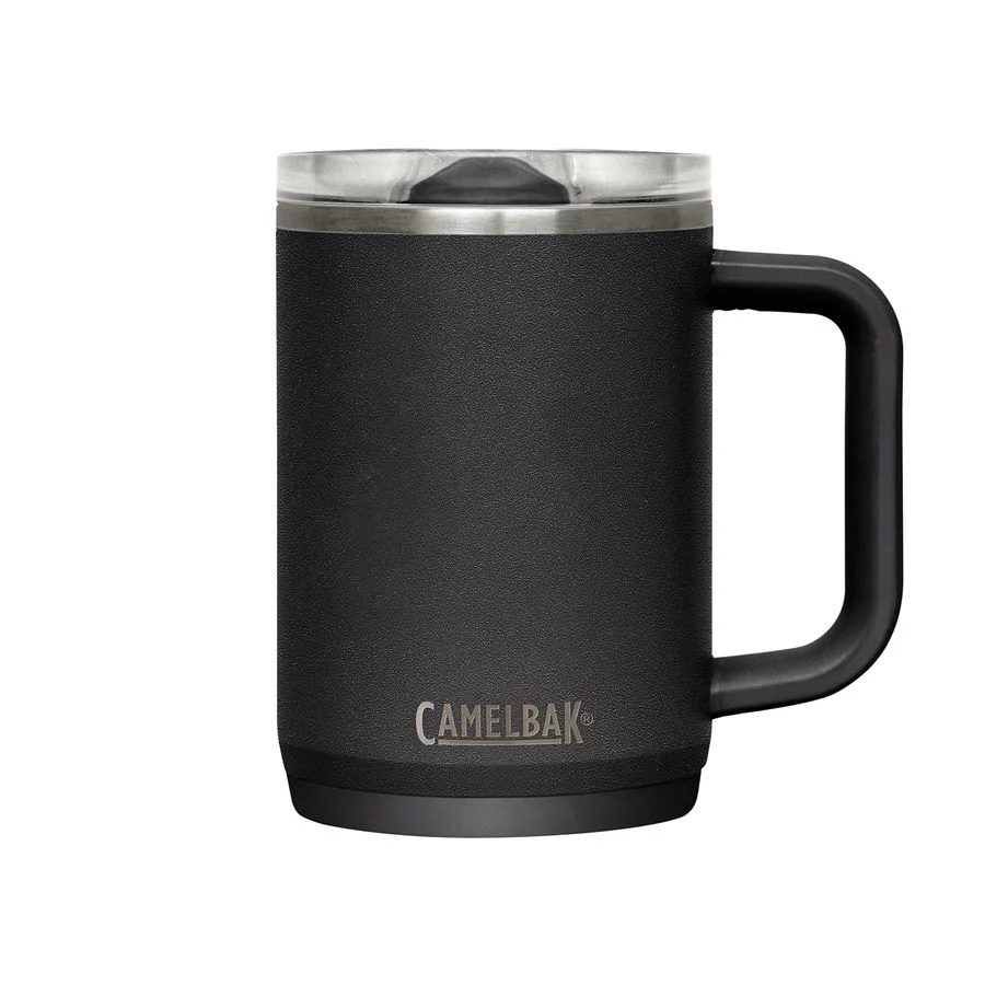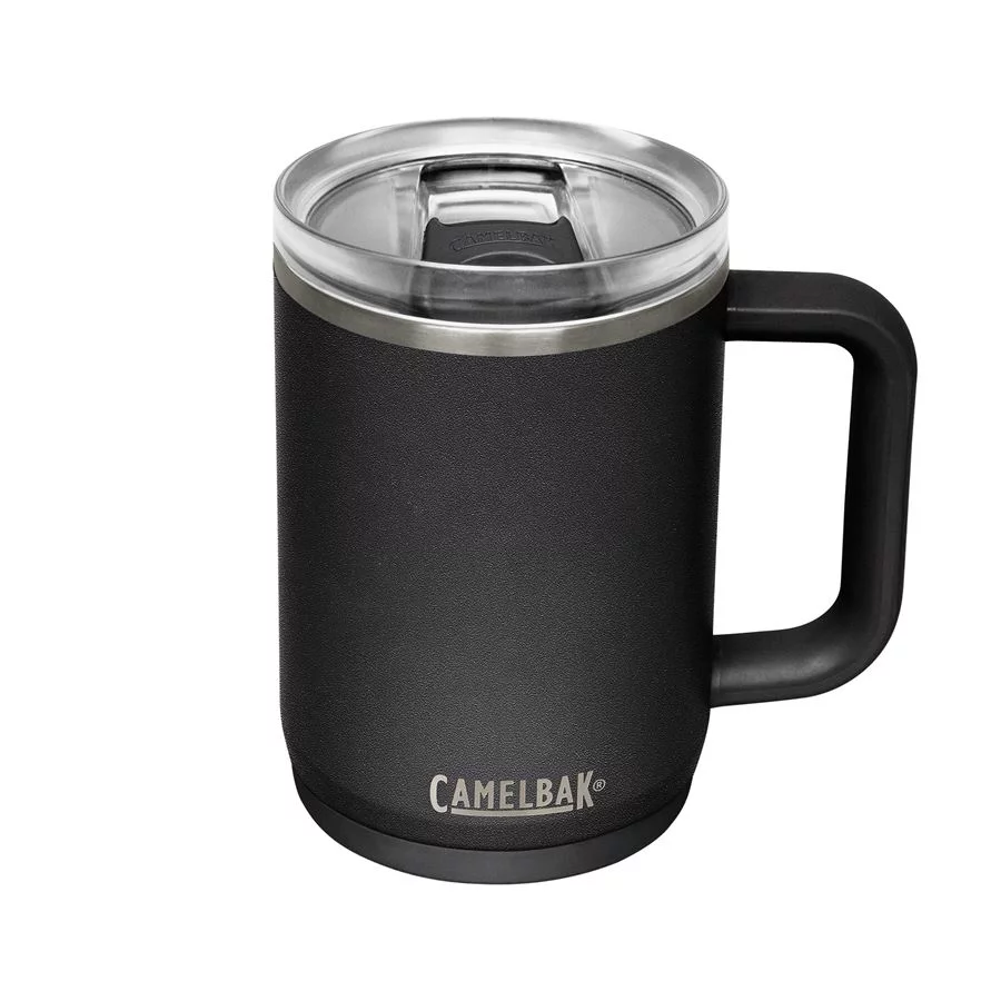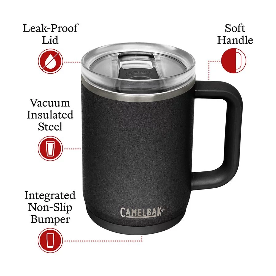 CamelBak Thrive Mug Vacuum 500 ml in black is a practical thermos mug for everyday use and travel. Thanks to the double-walled stainless steel with vacuum insulation, it keeps drinks hot for up to 5 hours and cold for approximately 10 hours. The leak-proof lid reliably prevents spills, and the non-slip base ensures stability on any surface.