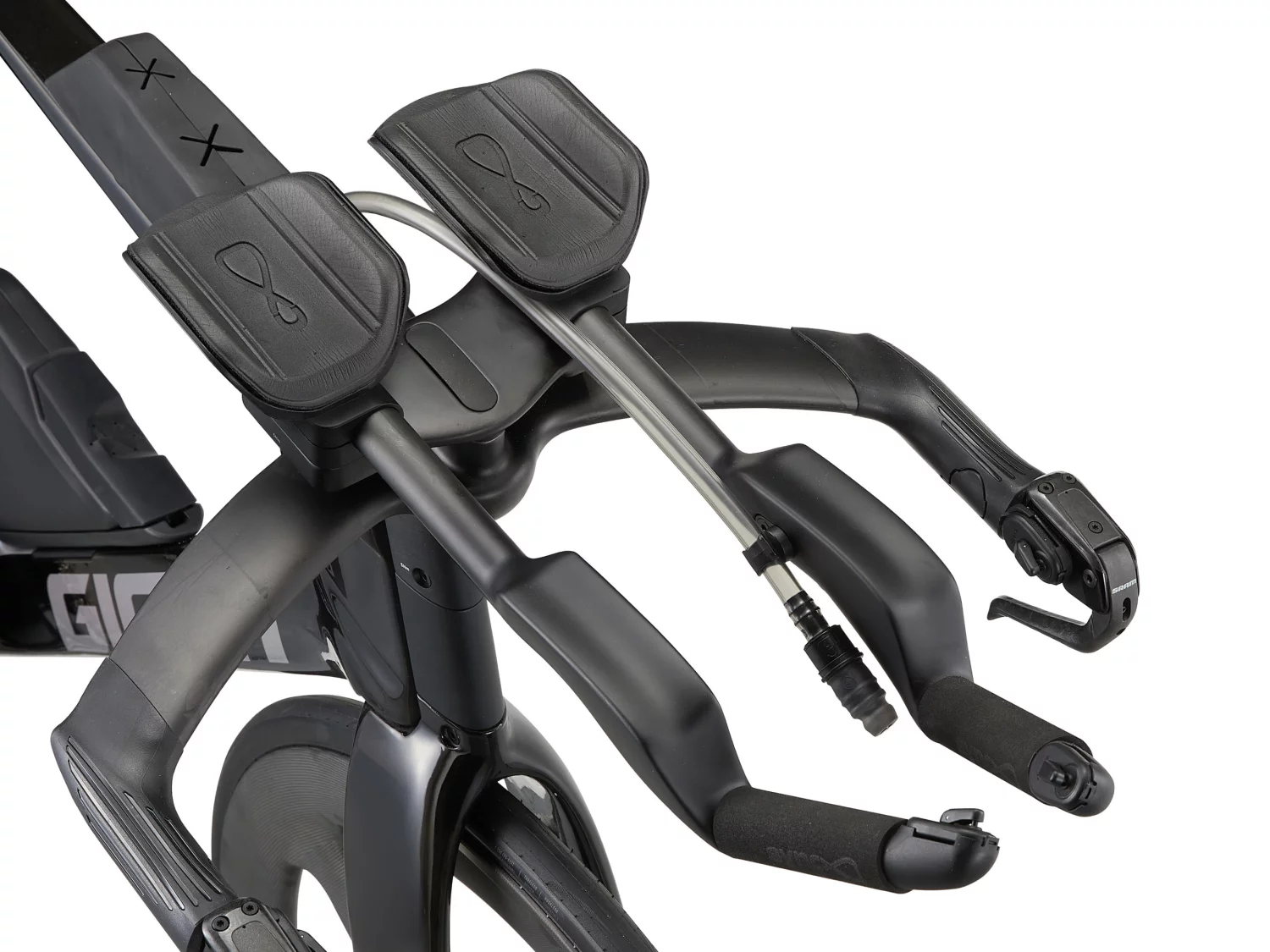 A major advantage of the Trinity Advanced SL 2 is the AEROVAULT System , a fully integrated hydration and nutrition storage system. It includes an integrated beverage reservoir with a capacity of approximately 700-850 ml , complete with an easily accessiblewith a drinking tube located within arm's reach on the extensions. In addition, there is an integrated bento box-type storage space on the top frame tube that can hold up to six energy gels . The entire system is designed not to interfere with aerodynamics , but to help improve them.