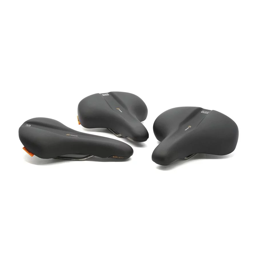The Explora saddle with its ergonomic center channel is designed to provide high comfort on any surface – whether you’re riding on the road or in light terrain. Royal Gel™ padding, together with an integrated shock absorber in the back of the saddle, which works similarly to an elastomer, effectively absorbs vibrations and allows for a carefree ride. The slightly curved profile of the saddle makes it easy to quickly find the right riding position and also serves as support on steep climbs.